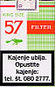 57 Filter King Size Slovenia 2013 20 pieces with Filter in Soft Pack with Cellophane Tar 10, Nicotine 0.8, Barcode 3831000702819 Producer Tobacna Ljubljana Trade Mark Owner Imperial Tobacco |
