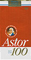 Astor 100's Italy 1990's 20 pieces with Filter in Soft Pack with Cellophane Tar 14, Nicotine 1.0 Producer Reemtsma Trade Mark Owner Waldorf Astoria International production discontinued in 1995 |