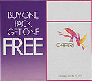 Capri Duty Free USA 1990's 20 pieces with Filter in Flip Top Box with Cellophane Barcode 02723822 Producer Brown & Williamson Tobacco Co. Trade Mark Owner Brown & Williamson Tobacco Co. |
