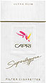 Capri Bianco Ukraine 2009 20 pieces with Filter in Flip Top Box with Cellophane Tar 1, Nicotine 0.1, Barcode 4820001983425, Price 5.50 Hrn Producer B.A.T.-Pryluky Trade Mark Owner British American Tobbaco (Brands) Inc. |
