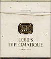 Corps Diplomatique Luxury Mild Luxembourg late 1970's 20 pieces with Filter in Flip Top Box with Cellophane Price 60 Fr Producer Ed. Laurens S.A., Belgium Trade Mark Owner Ed. Laurens S.A. |