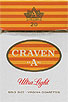 Craven "A" Ultra Light Canada 1980's 20 pieces with Filter in Flip Top Box with Cellophane Tar 1, Nicotine 0.1 Producer The House of Craven Ltd., Toronto Trade Mark Owner The House of Craven Ltd. |