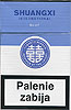 Shuang Xi China 2000 20 pieces with Filter in Flip Top Box with Cellophane Tar 17, Nicotine 1.2, Barcode 69011368 Producer Shanghai Cigarette Factory Trade Mark Owner Nanyang Brothers Tobacco Co. Ltd. |