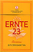 Ernte 23 Sondertyp Germany early 1990's 19 pieces with Filter in Flip Top Box with Cellophane Tar 14, Nicotine 1.0, Barcode 40304052, Price 4.90 DM Producer Reemtsma Trade Mark Owner Reemtsma |