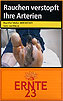 Ernte 23 Austria 2004 20 pieces with Filter in Flip Top Box with Cellophane Tar 10, Nicotine 0.8, Barcode 40304038, Price 3.30 Producer Reemtsma Germany Trade Mark Owner Reemtsma got replaced by version with Austrian health warning in 2006 |