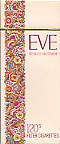 Eve 120 Germany late 1970's 20 pieces with Filter in Flip Top Box with Cellophane Tar 12, Nicotine 0.6, Price 3 DM Producer Martin Brinkmann Trade Mark Owner Philip Morris Inc. |
