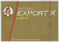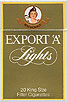 Export 'A' Lights Canada 1980's 20 pieces with Filter in Flip Top Box with Cellophane Tar 14, Nicotine 1.0 Producer Macdonald Tobacco Inc., Montréal Trade Mark Owner Macdonald Tobacco Inc. |