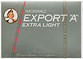 Export "A" Extra Light Canada late 1980's 25 pieces with Filter in Sliding Box with Cellophane Tar 8, Nicotine 0.8, Barcode 601631 Producer RJR-Macdonald Inc., Montréal Trade Mark Owner RJR-Macdonald Inc. |