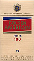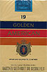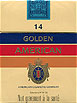Golden American Filter France 1990's 25 pieces with Filter in Flip Top Box with Cellophane Tar 14.9, Nicotine 1.00, Barcode 87217377 Producer British American Tobacco Netherlands Trade Mark Owner American Cigarette Company (Overseas) Ltd. |