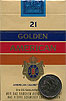 Golden American Filter Duty Free Austria 1990's 25 pieces with Filter in Flip Top Box with Cellophane Tar 15, Nicotine 1.0, Barcode 87217377 Producer British American Tobacco Netherlands Trade Mark Owner American Cigarette Company (Overseas) Ltd. |