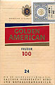 Golden American Filter 100 Germany 2000 24 pieces with Filter in Flip Top Box with Cellophane Tar 12, Nicotine 1.0, Barcode 40315027, Price 6.60 DM Producer British American Tobacco Germany Trade Mark Owner American Cigarette Company (Overseas) Ltd. |