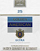 Golden American Ultra Germany 1990's 25 pieces with Filter in Flip Top Box with Cellophane Tar 3, Nicotine 0.3, Barcode 40668352, Price 5.30 DM Producer Martin Brinkmann Trade Mark Owner American Cigarette Company (Overseas) Ltd. |