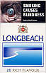 Longbeach Mild Australia early 2000's 20 pieces with Filter in Flip Top Box with Cellophane Tar 12 or less, Nicotine 1.2 or less, Barcode 9310704639309 Producer Philip Morris Ltd. Trade Mark Owner Philip Morris Products S.A. |