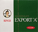 Macdonald's Export 'A' Filter Kings Canada 1970's 25 pieces with Filter in Sliding Box with Cellophane Producer Macdonald Tobacco Inc., Montreal Trade Mark Owner Macdonald Tobacco Inc. |