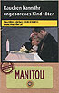 Manitou Full Flavor Germany 2000 20 pieces with Filter in Soft Pack with Cellophane Tar 11, Nicotine 1.3, Barcode 4006396095602, Price 5.50 DM Producer Von Eicken Trade Mark Owner Von Eicken |