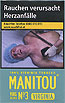 Manitou Virginia Green Austria 2015 20 pieces with Filter in Flip Top Box with Cellophane Tar 7, Nicotine 0.8, Barcode 4006396080523, Price 5.20 Producer Von Eicken, Germany Trade Mark Owner Von Eicken got replaced by version with big health warning in October 2016 |