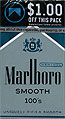 Marlboro Smooth 100's Menthol limited edition with print at cellophane USA 2016 20 pieces with Filter in Flip Top Box with Cellophane Barcode 028200174734 Producer Philip Morris USA Trade Mark Owner Philip Morris |