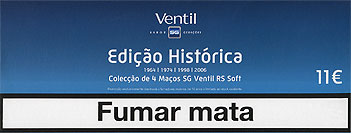 | SG Ventil 9mg limited history edition Portugal 2006 4x20 pieces with Filter in Soft Pack with Cellophane Tar 9, Nicotine 0.7, Barcode 56091991, Price 4x2.75 € Producer Tabaqueira S.A., Albarraque Trade Mark Owner Tabaqueira |