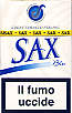 Sax Blue limited edition Italy 2004 20 pieces with Filter in Flip Top Box with Cellophane Tar 7, Nicotine 0.6, Barcode 8027463103347 Producer British American Tobacco Italy Trade Mark Owner British American Tobacco |