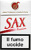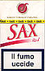 Sax Red limited edition Italy 2004 20 pieces with Filter in Flip Top Box with Cellophane Tar 10, Nicotine 0.9, Barcode 8027463102272 Producer British American Tobacco Italy Trade Mark Owner British American Tobacco |