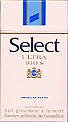 Select Ultra 100's Switzerland 2001 20 pieces with Filter in Flip Top Box with Cellophane Tar 1, Nicotine 0.1, Barcode 76136832, Price 4.70 Fr Producer British Amercian Tobacco Switzerland Trade Mark Owner British American Tobacco |
