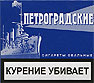 Petrogradskiye Russia 2010 20 pieces in Hard Pack Tar 10, Nicotine 1.0, Barcode 4605648001349, Price 14 R Producer OAO Pogarskaya Sigaretno-Sigarnaya Fabrika Trade Mark Owner OAO Pogarskaya Sigaretno-Sigarnaya Fabrika |