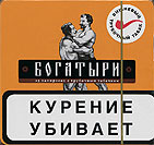 Bogatyri Russia 2012 25 Papirossi in Metal Hinged Box with Cellphane Barcode 4607141333989, Price 135 R Producer OOO Manchester Enterprise Trade Mark Owner OOO Winston-Salem General Tobacco |