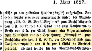 In 1956 AUSTRIA TABAKWERKE launched a jubilee pack to celebrate the 60th anniversay of brand MEMPHIS. See printing inside front cover. From the 1980's until 2003 you find various documents from AUSTRIA TABAK where they declare the introduction year of MEMPHIS with 1897. But in 2005 they launched a new line called MEMPHIS 1896 - and from there on they use to print on MEMPHIS packs "SINCE 1896". |