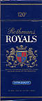 Royals 120s Duty Free Italy 1980's 20 pieces with Filter in Flip Top Box with Cellophane Producer Rothmans, Netherlands Trade Mark Owner Rothmans of Pall Mall |